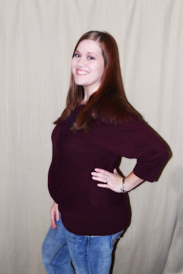 So I am carrying Bryson so different from how I carried Alena. She was always so high, where Bryson sits down pretty low. I have worn a maternity shirt a few times when we’ve gotten dressed up and gone out just cuz it is more comfortable and I don’t want to be in just a junky T-Shirt, but they still aren’t totally necessary.